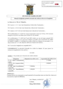 - Décision budgétaire portant virements de crédits au titre de la fongibilité