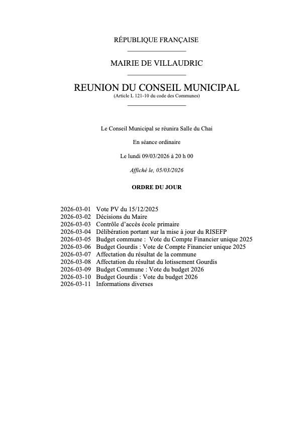 - Ordre du jour du 18/03/2024